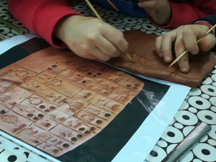 A través de este taller nos adentramos en un viaje al origen de la escritura, que nos permitirá  comunicarnos entre nosotros, conociendo los secretos de las tablillas de barro incisas en la Antigua Mesopotamia y dibujar  jeroglíficos en papiro como auténticos egipcios.