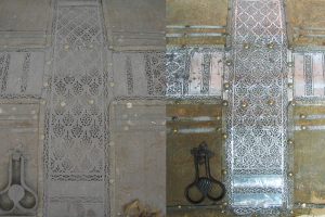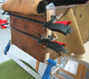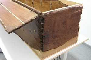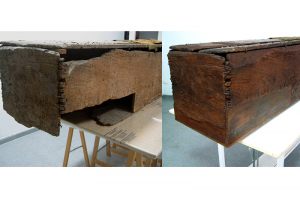 Desinsectación y desinfección la técnica de atmósferas transformadas con gas inerte (nitrógeno de alta pureza). Limpieza, consolidación material y reintegración de piezas estructurales del soporte.